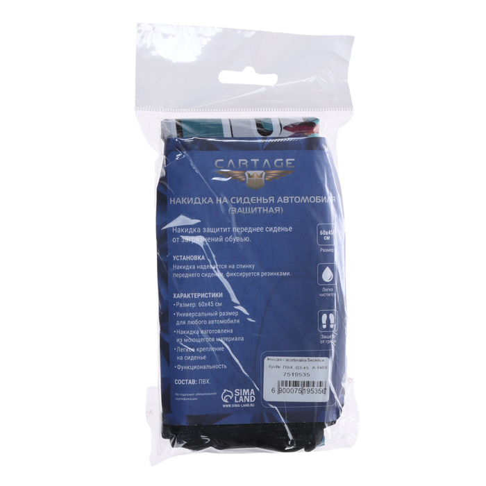 Накидки на сиденья автомобиля от бренда Cartage - это стильная и надежная защита кресел салона от загрязнения, царапин, истирания. Данная модель-незапинайка предназначена в первую очередь для защиты спинки переднего сиденья от обуви ребенка и от лап животных. Защитные накидки универсальны, подходят для любых марок автомобилей. Размер накидки 60 х 45 см. Благодаря яркому дизайну с качественной печатью, накидка украсит салон автомобиля и превратит поездку ребёнка в увлекательное путешествие. На выбор - различные варианты расцветок. Накидка-незапинайка Cartage выполнена из прочного материала, который не впитывает влагу и загрязнения, стойкий к истиранию, механическим повреждениям и царапинам. Легко очищается без специальных средств и не требует стирки.