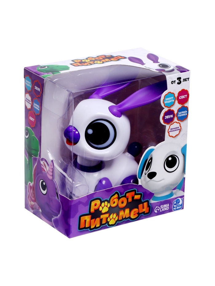 Робот кролик «Питомец» IQ BOT, интерактивный: с записью звуков, реагирует на хлопки, звук, свет, на батарейках, розовый