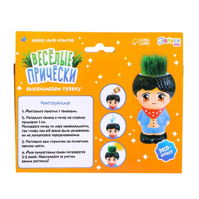 Набор для опытов «Весёлые прически: Мальчик», выращиваем травку