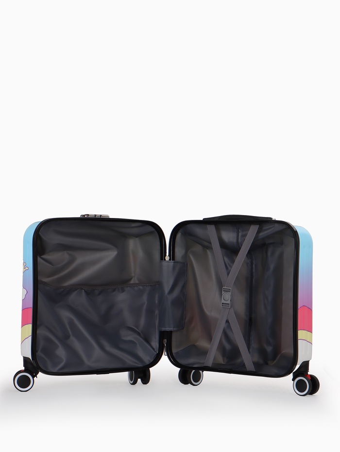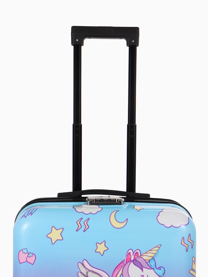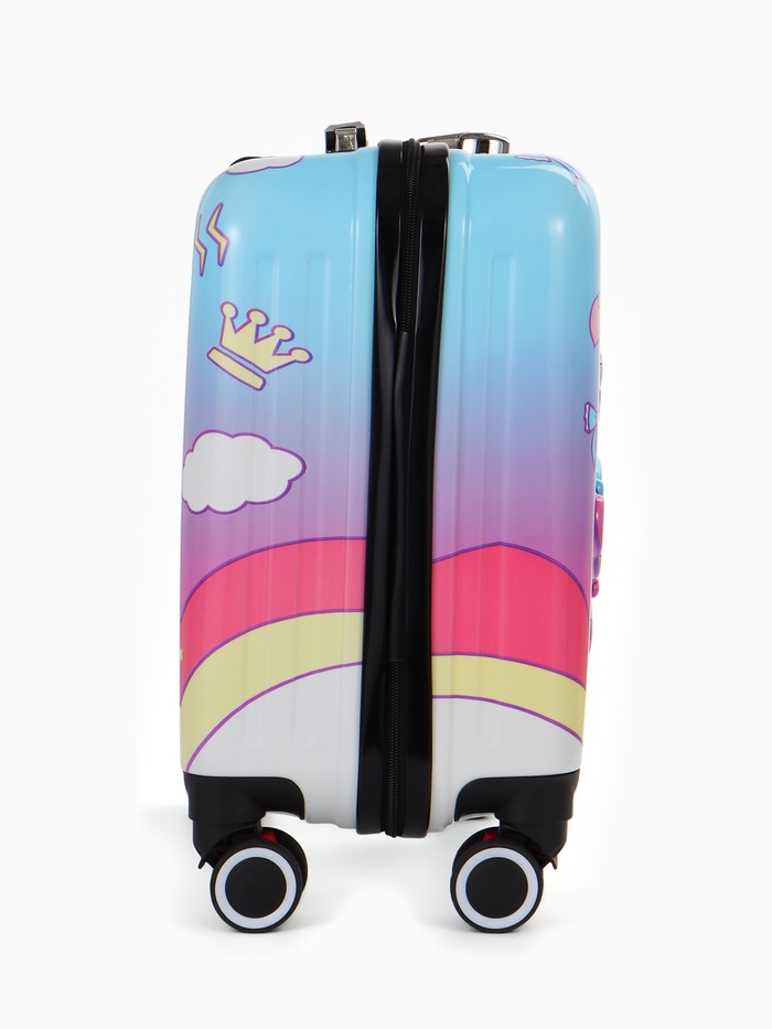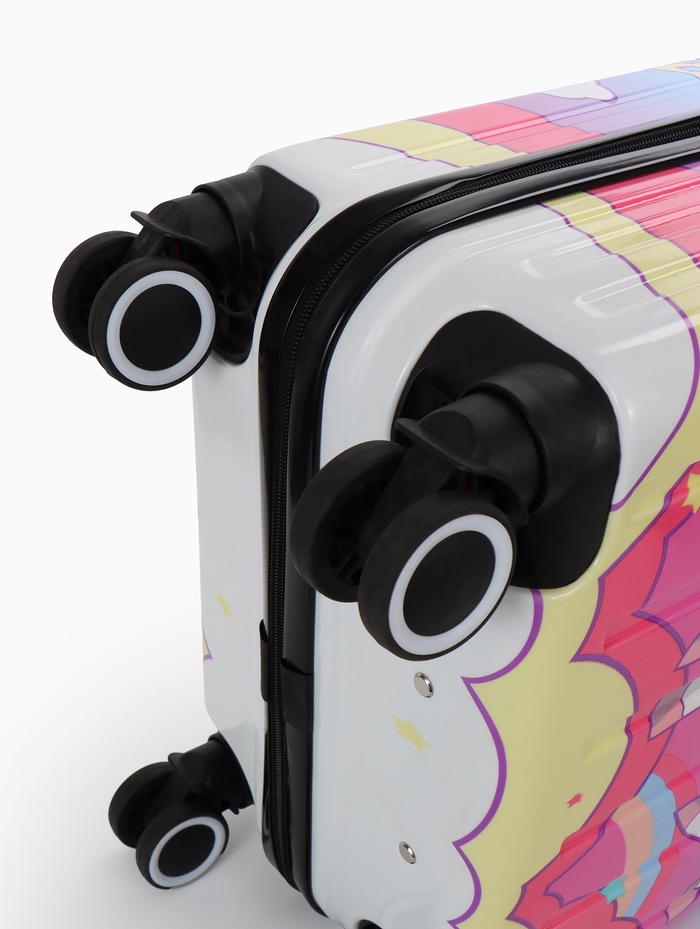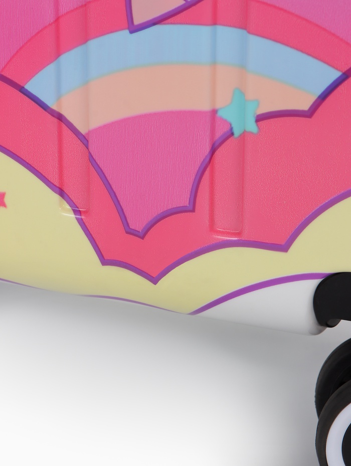 Этот розовый детский чемодан на колёсах — верный спутник для первой самостоятельной поездки. Его компактный размер 20 дюймов идеально подходит для ребёнка: он лёгкий, его просто везти и нести. Четыре поворотных колеса обеспечивают манёвренность даже для маленькой путешественницы. Яркий дизайн с красочным принтом создаёт праздничное настроение и помогает легко опознать свой багаж среди других.