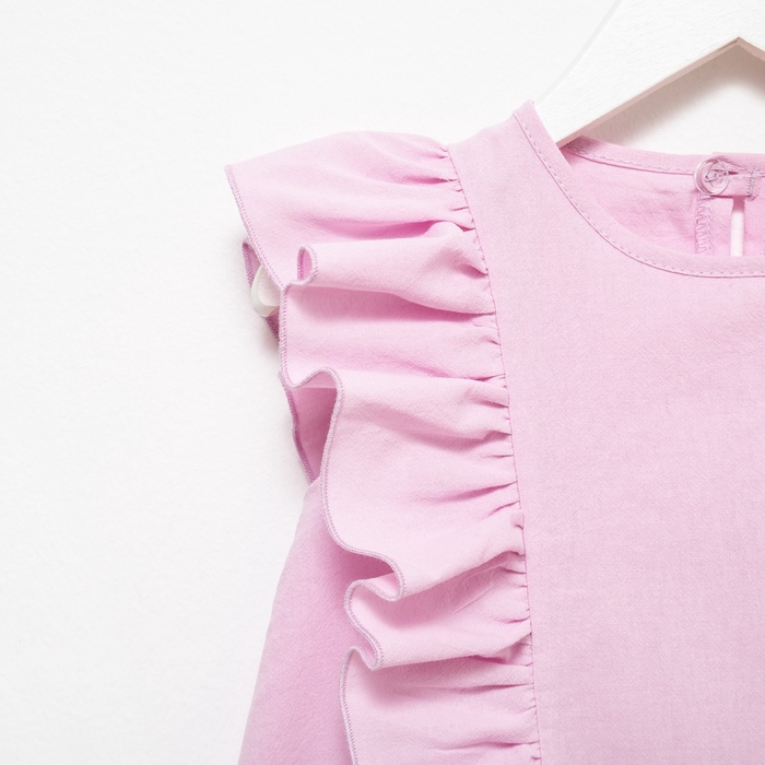 Мягкая блузка из хлопка создаёт комфортные условия для прогулок в тёплое время года. Свободный покрой без рукавов позволяет легко сочетать изделие с юбками, брюками и джинсами, создавая романтичные образы. Нежный сиреневый оттенок и изящные рюши делают изделие прекрасным выбором для подарка к 8 Марта. Качественный материал сохраняет форму и мягкость даже после многократных стирок, радуя юную модницу своей практичностью и красотой.