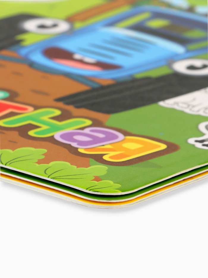 - 8 страниц с магнитной основой для размещения 15 ярких магнитных фигурок героев мультфильма «Синий трактор».