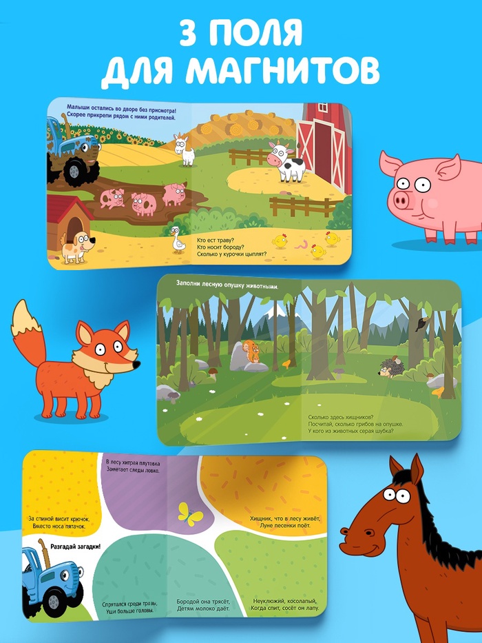 Магнитная книга «Весёлые зверята с Синим трактором» — это не просто развлечение, а источник радости и знаний для маленьких исследователей. Подарите ребёнку возможность учиться и играть с удовольствием!