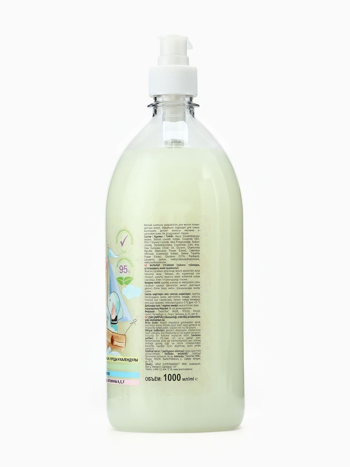 Состав: aqua, cocamidopropyl betaine, sodium laureth sulfate, cocamide DEA, PEG-7 (glyceryl cocoate), alkyl polyglucoside, sodium chloride, styrene/acrylates copolymer, citric acid, olive oil, glycerin, chamomilla extract, calendula extract, bidens tripartita extract, EDTA, D-panthenol, vitamin A, E, F, parfum, methylchloroisothiazolinone, methylisothiazolinone.