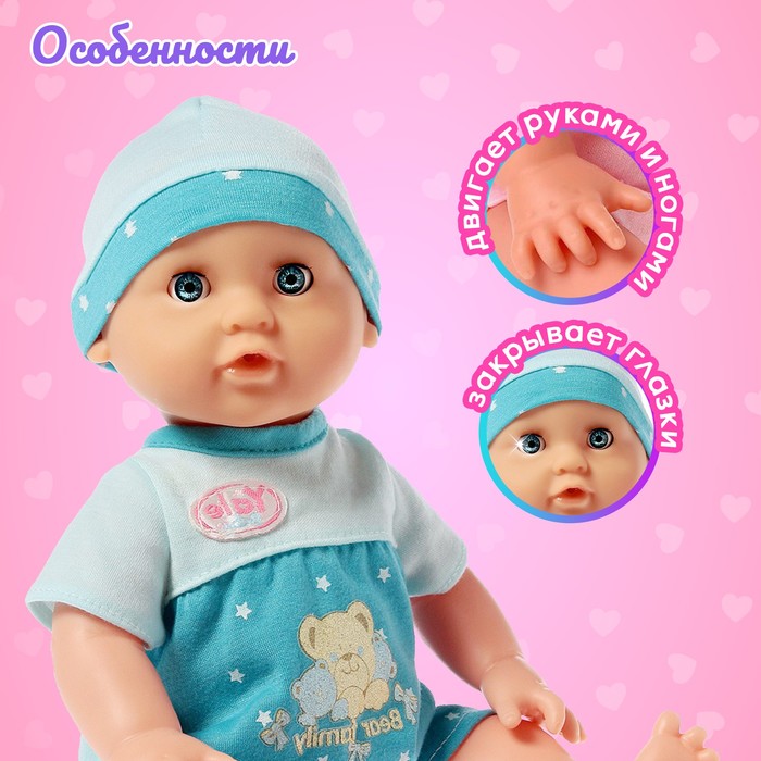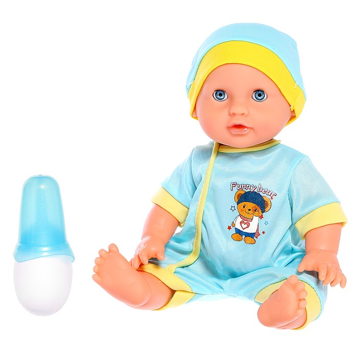 Пупс функциональный «Саша», с бутылочкой, пьёт, писает, цвет голубой