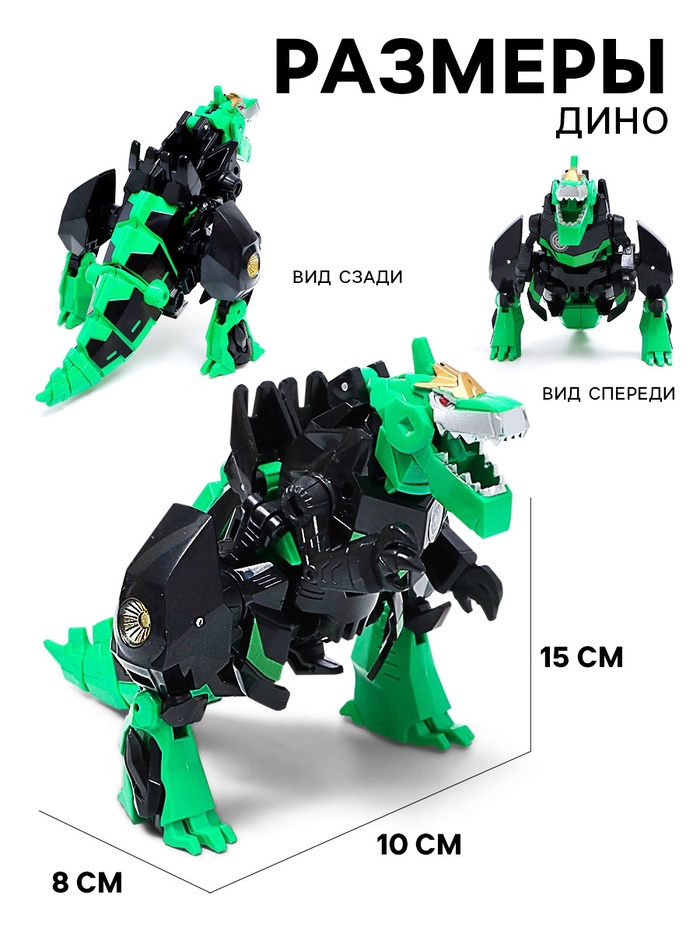 - Трансформация за секунды: превращай робота в динозавра одним движением руки! А потом снова собирай его обратно в мощного бойца. Две формы трансформации – это два разных персонажа, каждый со своим характером.