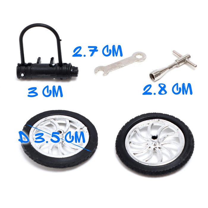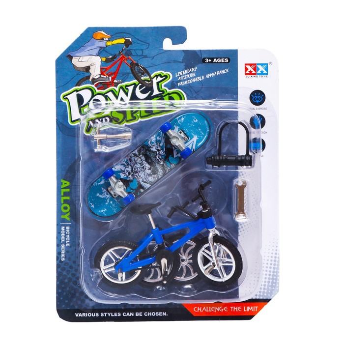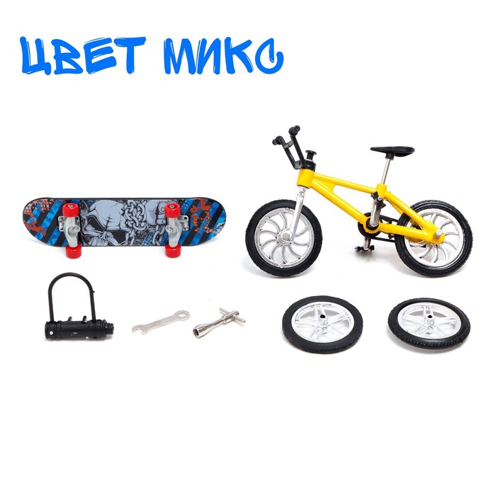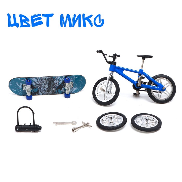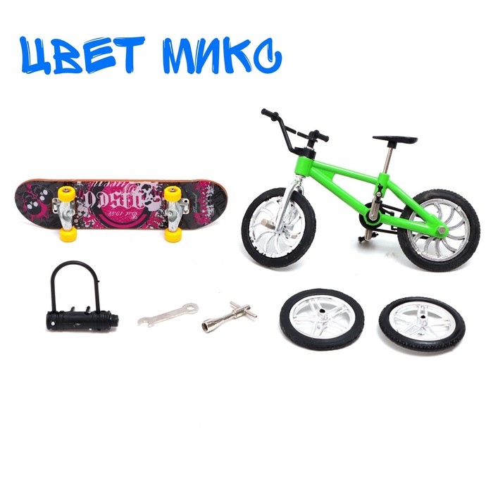 • В комплект входят фингербайк и фингерборд — уменьшенные версии велосипеда и скейтборда.