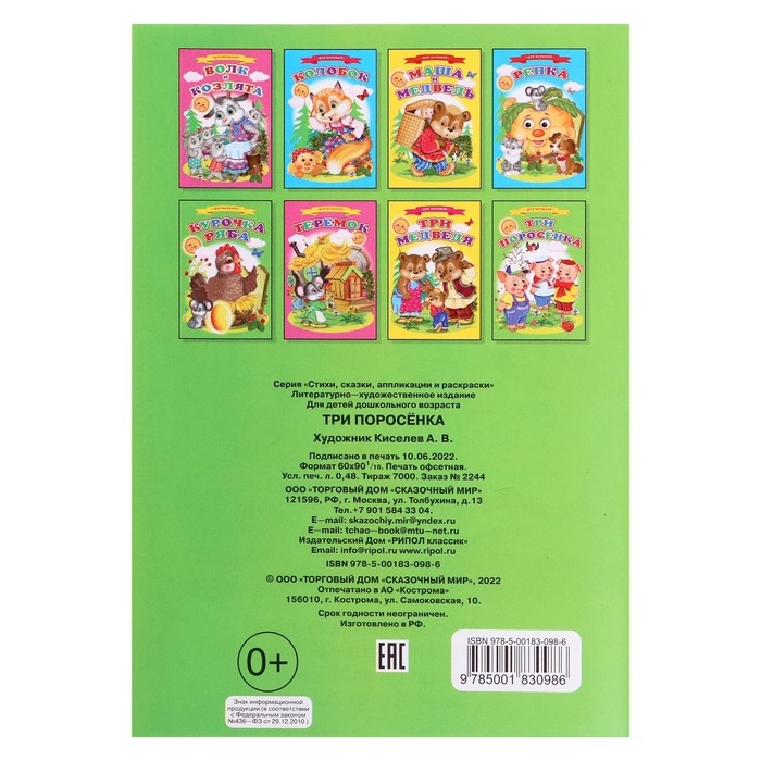 Книга «Три поросёнка» — это классическая русская народная сказка, которая перенесёт малышей в мир добра, приключений и ярких эмоций. Мягкий переплёт и красочные иллюстрации делают её идеальной для детей от 3 лет.