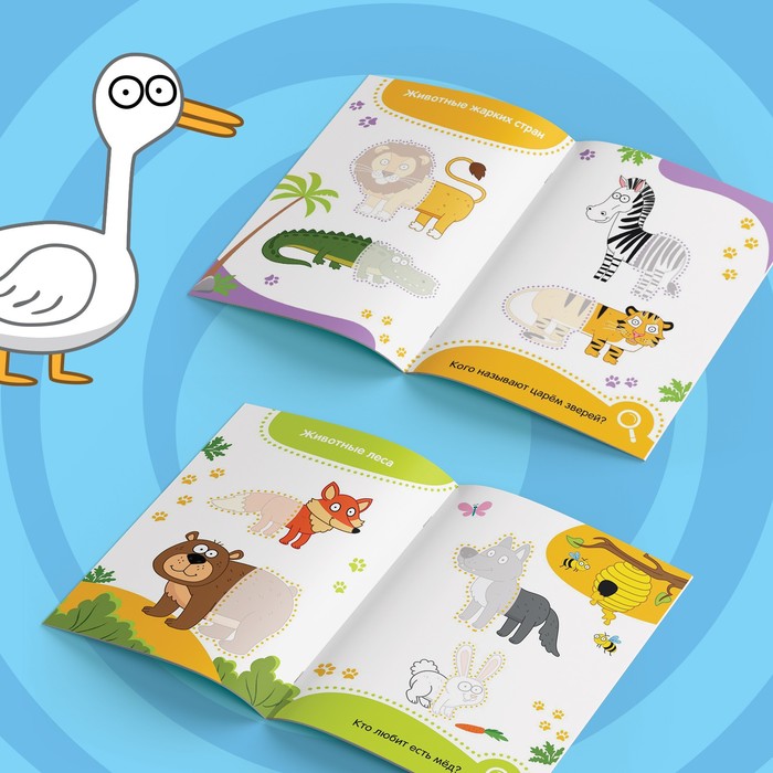 Изучайте животных и решайте тематические задания с помощью специальных наклеек-половинок. Интерактивные игры с красочными картинками способствуют развитию цветового восприятия, визуального и логического мышления. Привлечение ребёнка в творческую деятельность с самого раннего возраста — это занимательно и просто!
