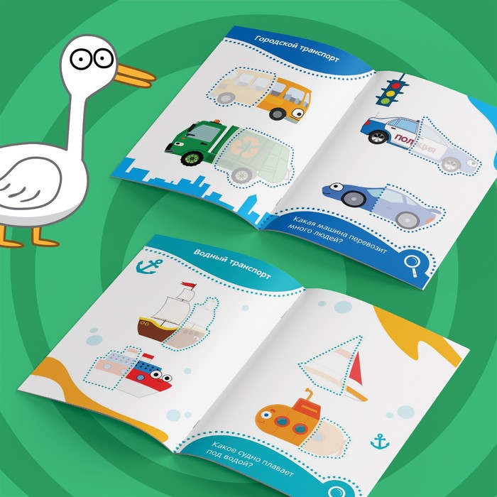 Изучайте транспорт и решайте тематические задания с помощью специальных наклеек-половинок. Интерактивные игры с красочными картинками способствуют развитию цветового восприятия, визуального и логического мышления. Привлечение ребёнка в творческую деятельность с самого раннего возраста — это занимательно и просто!