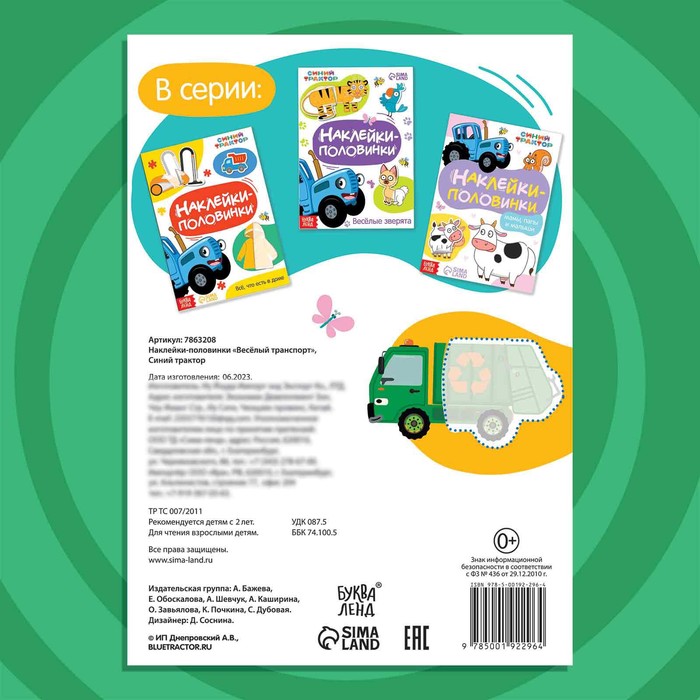 Набор наклеек «Весёлый транспорт» — это возможность для ребёнка решить интересные задачки вместе с Синим трактором!