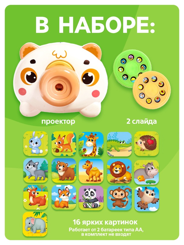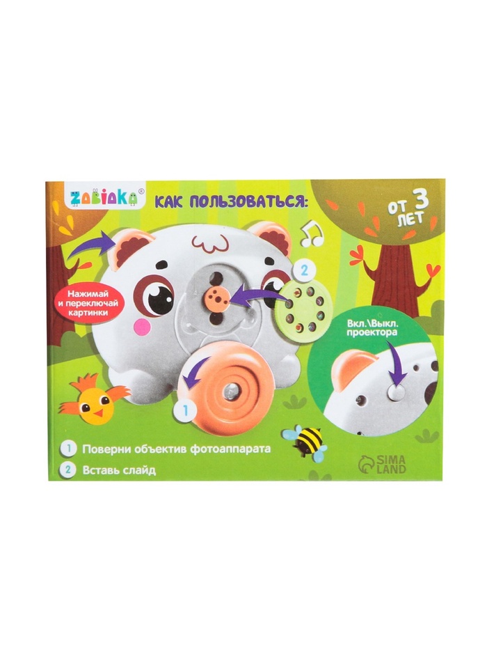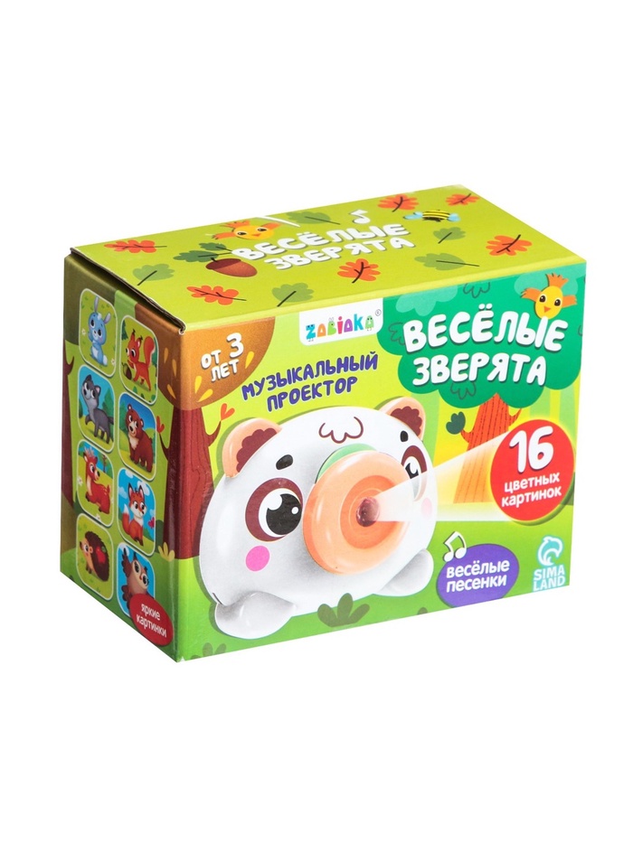 Музыкальный проектор ZABIAKA «Весёлые зверята: Мишутка», звуковые и световые эффекты, 2 слайда, 16 картинок, белый