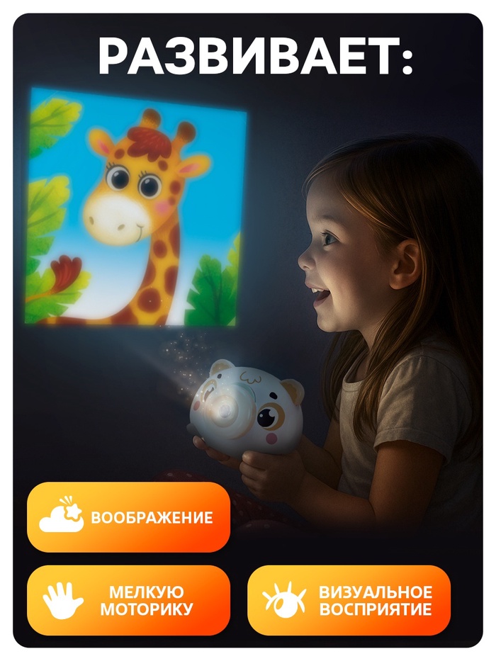 Музыкальный проектор «Весёлые зверята» привлечёт внимание трогательным дизайном и надолго займёт малыша благодаря множеству полезных функций. Игрушка не только развлечёт ребёнка — с ней можно осваивать новые навыки!