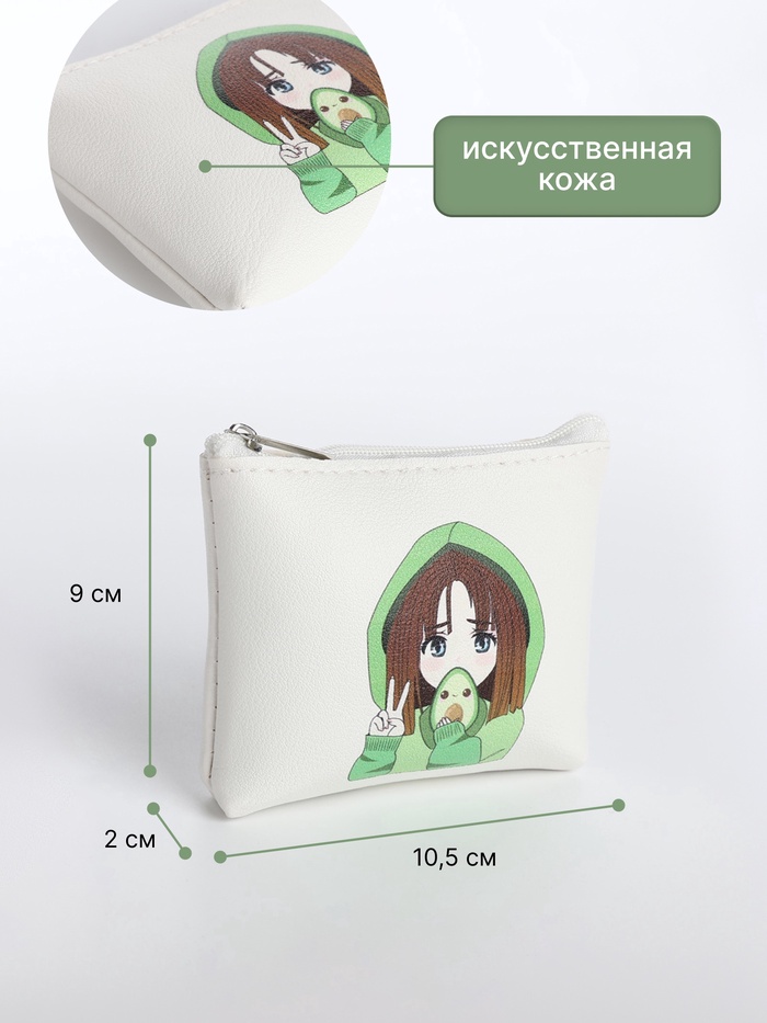 Кошелёк детский «Аниме avocado», монетница, на молнии, с рисунком, белый
