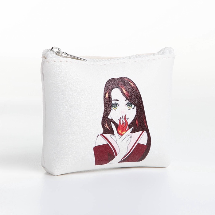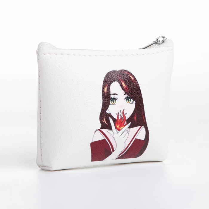 Кошелёк детский «Аниме fire», монетница, на молнии, с рисунком, белый