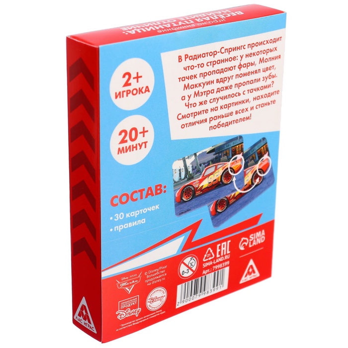 Настольная игра «Найди отличия, удивительная пропажа», на внимание, Тачки