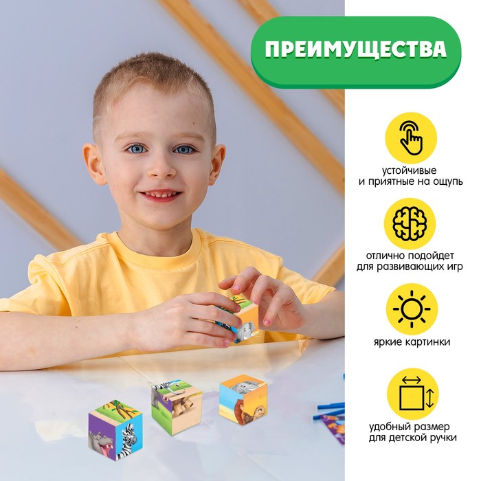Кубики IQ детские с животными «Весёлый зоопарк», 4 шт., размер 4 × 4 см.