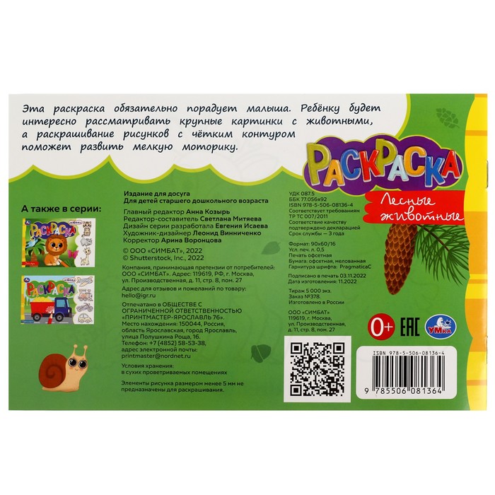 Раскраска «Лесные животные», 8 страниц