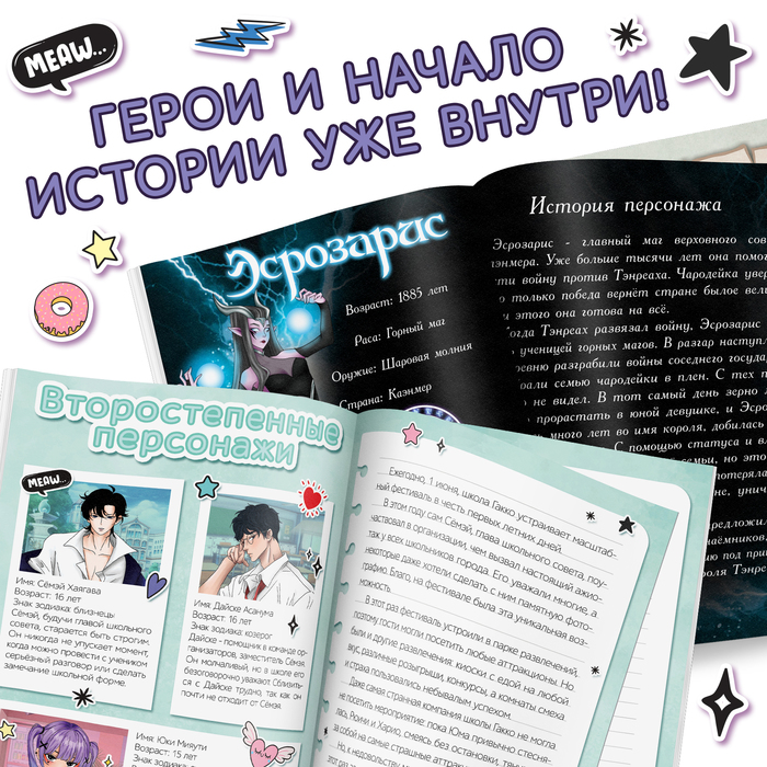 Набор понравится всем любителям рисовать и смотреть аниме. Под обложкой вас ждут необычные персонажи с уникальной историей, а ещё вы сможете придумать и нарисовать с нуля собственного аниме-персонажа.