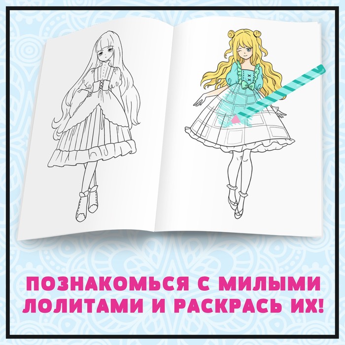 Познакомьтесь со стилем «Лолита» вместе с раскраской «Буква-ленд»! Впервые такой стиль появился у японских девушек в 1970-х годах. Для него характерны пышные юбки, рюши и банты.