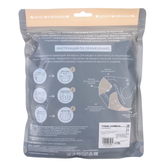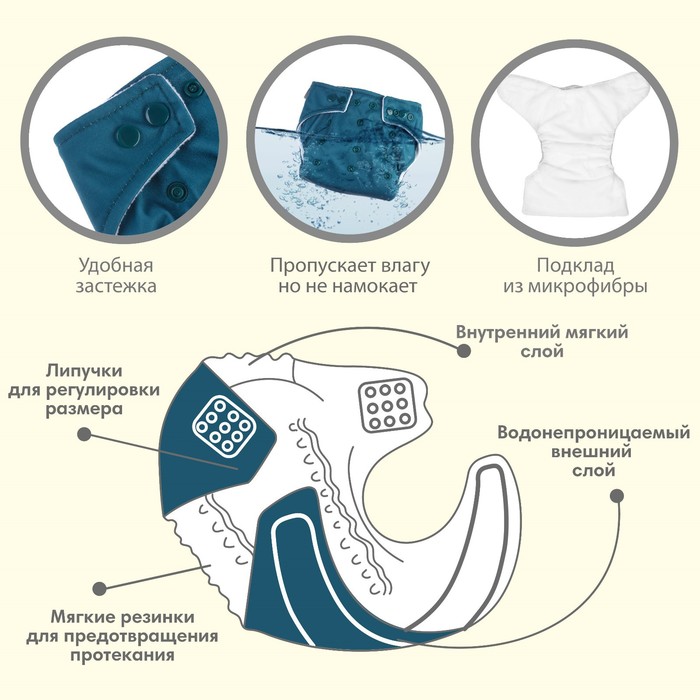 • Подгузник имеет удобный кармашек для вкладыша;