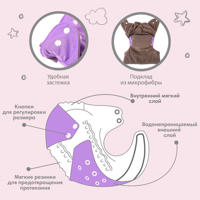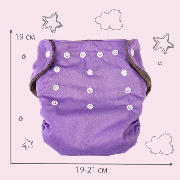 Многоразовый подгузник Крошка Я, 3-15 кг, угольно-бамбуковая ткань, фиолетовый