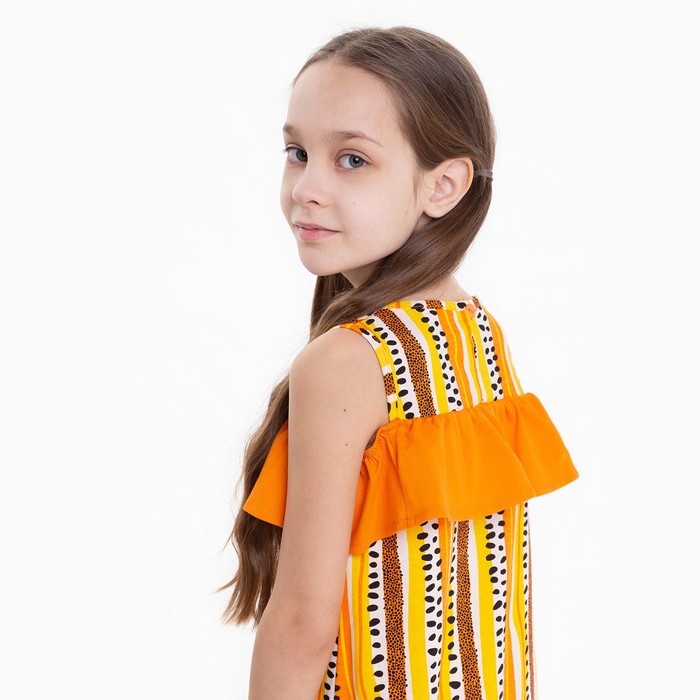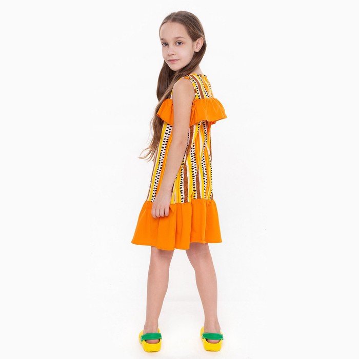 Сарафан для девочки, светло-бежевый, оранжевый, рост 98 см