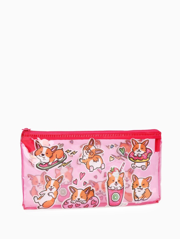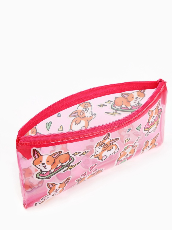 Косметичка - пенал на молнии, с ярким принтом, розовая