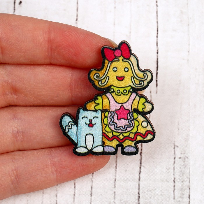 Деревянный значок «Мисс Пря» станет универсальным аксессуаром для повседневного образа. Этот экологичный аксессуар из натурального дерева с ярким дизайном подойдёт как детям, так и взрослым. Его можно закрепить на сумке, рюкзаке, одежде или головном уборе, добавив индивидуальности вашему стилю.