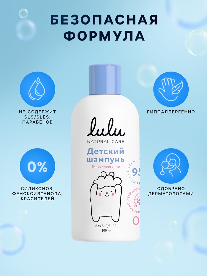 Шампунь детский LULU с протеинами пшеницы, без парабенов, без силиконов, 300 мл