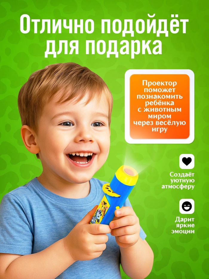 Проектор-фонарик «Весёлые зверята» станет прекрасным началом для развития творческих способностей ребёнка.