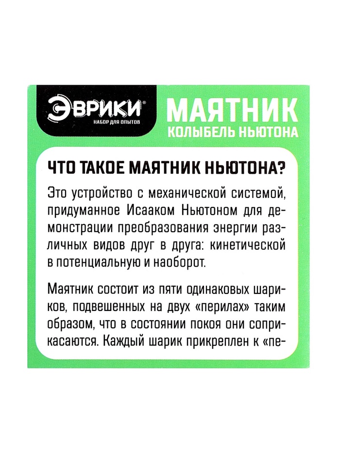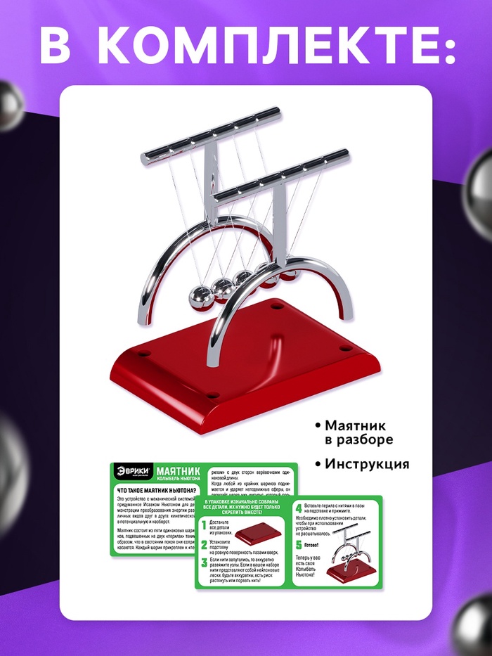 - Собрать маятник из набора очень просто — в комплект входит понятная и подробная инструкции. Дети смогут самостоятельно справиться с этой задачей и потренируют навыки логического мышления и усидчивость.