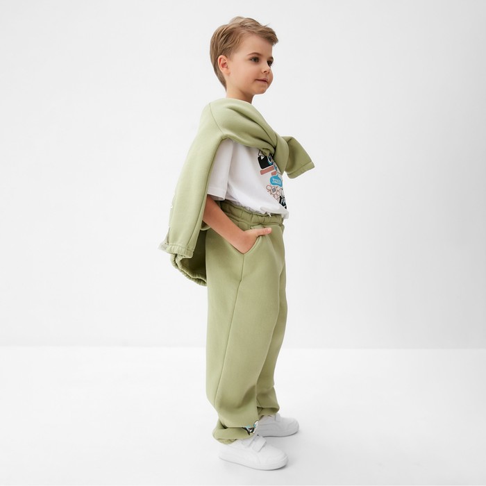 Брюки детские с начесом MINAKU: CRUSH, цвет оливковый, рост 122 см