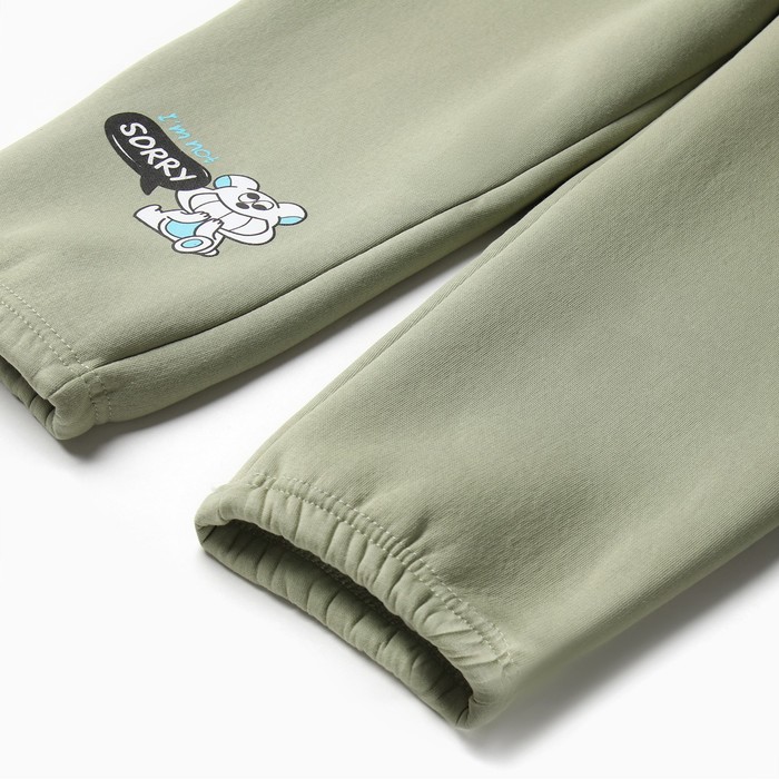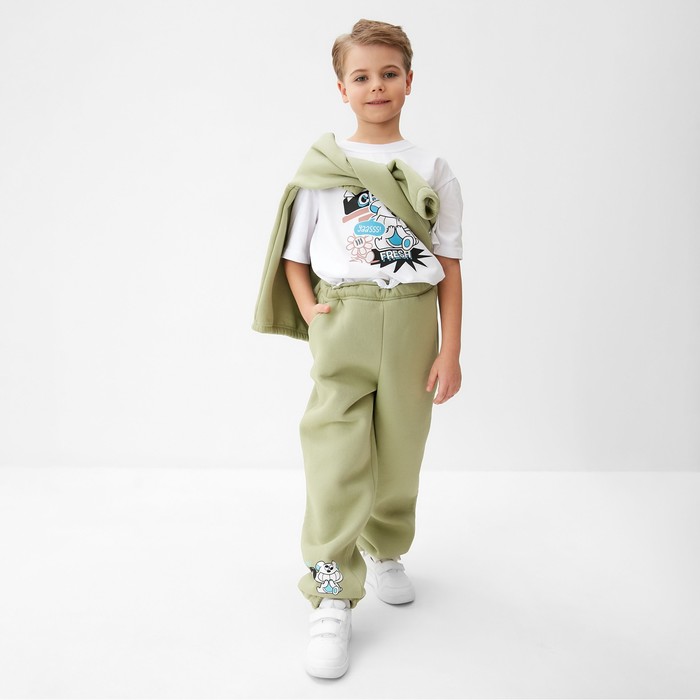 Брюки детские с начесом MINAKU: CRUSH, цвет оливковый, рост 146 см