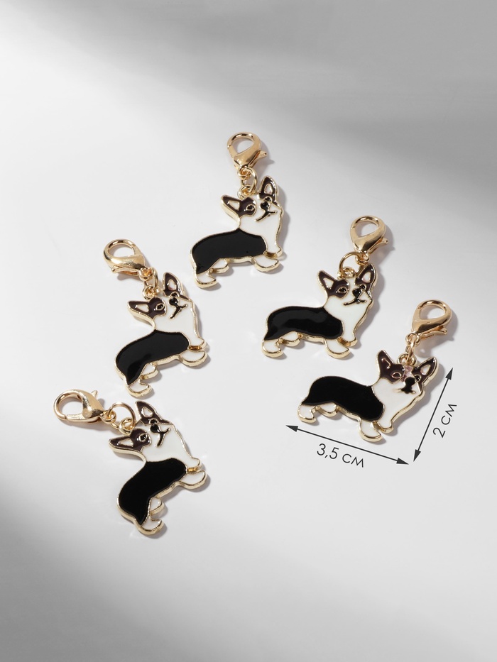 Шарм для браслета на карабине «Корги», чёрно-белый в золоте