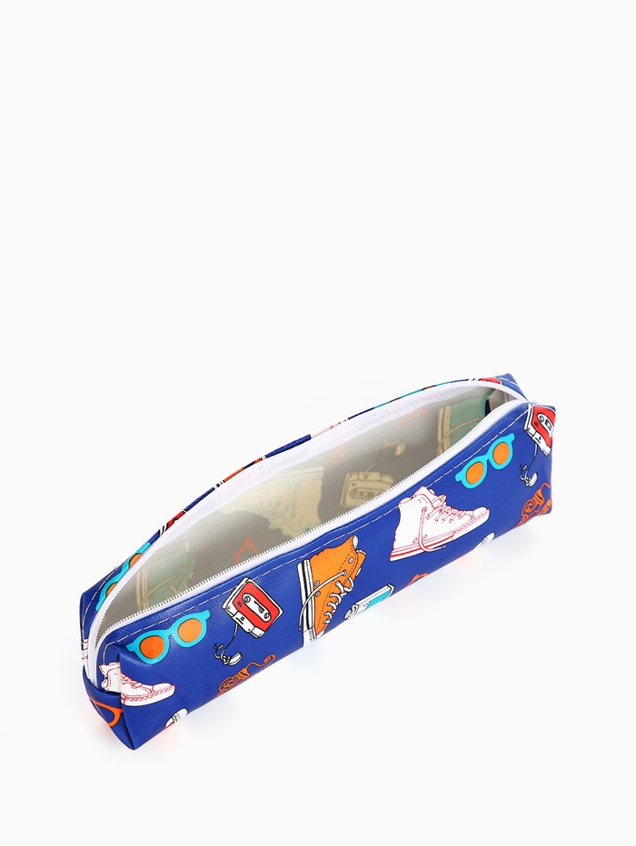 Синяя косметичка с рисунком — практичный и стильный органайзер для личных вещей. Её средний размер идеально подходит для школьных принадлежностей, канцелярии или дорожного набора для гигиены. Закрывается на надёжную молнию, защищая содержимое от потери.