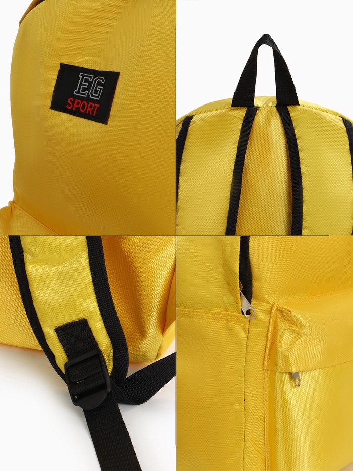 Рюкзак молодёжный на молнии, с карманом, однотонный, размер 29×12×39 см, жёлтый