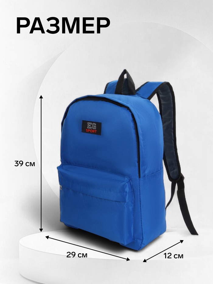 Рюкзак молодёжный на молнии, с карманом, однотонный, размер 29×12×39 см, синий