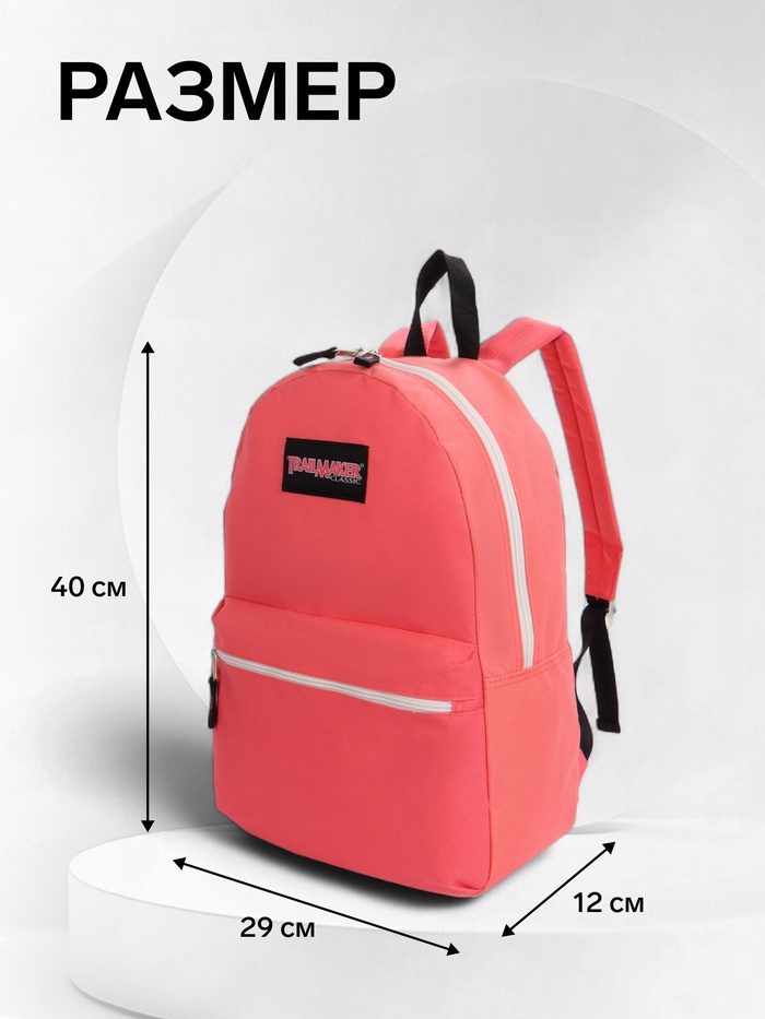 Рюкзак молодёжный на молнии, с карманом, однотонный, размер 29×12×39 см, розовый