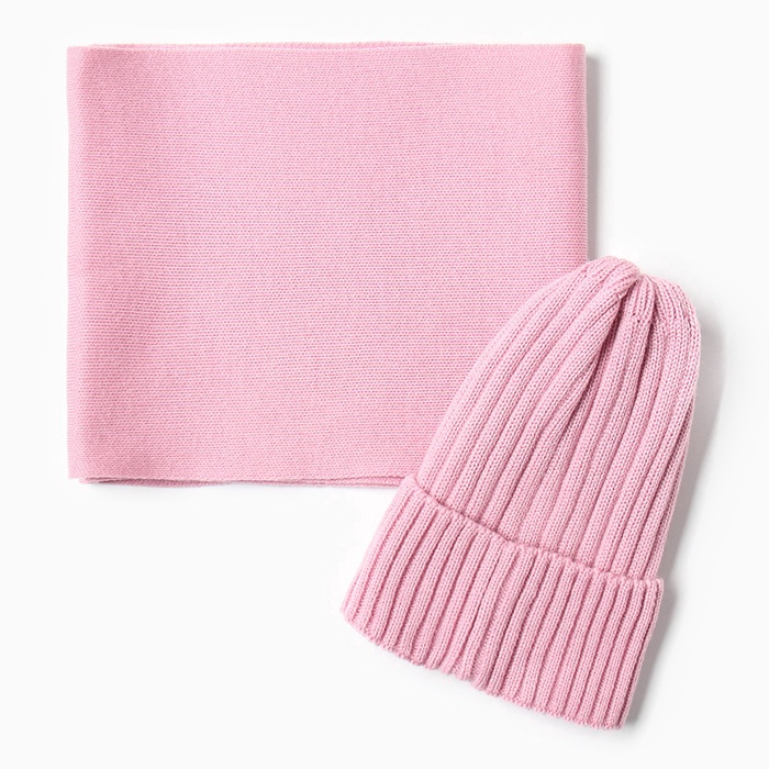 Комплект для девочки (шапка и снуд) KAFTAN, цвет пудровый, размер 44-48 (6-12 мес.)