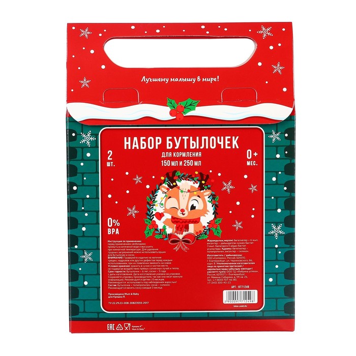 Подарочный набор «Новогодние друзья»: бутылочки для кормления 150 и 250 мл., прямые, от 0 мес., Крошка Я