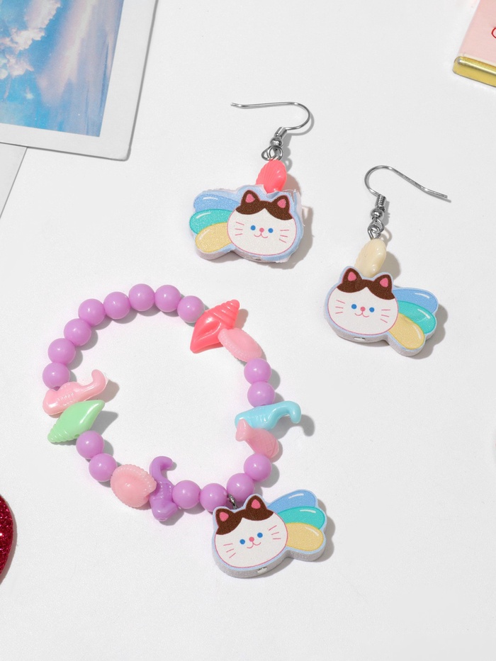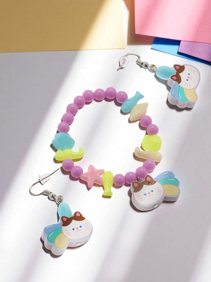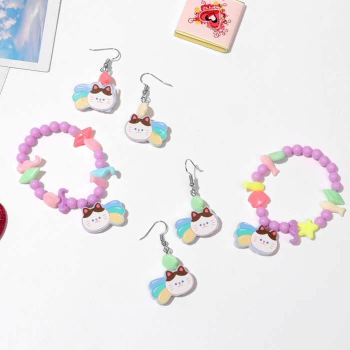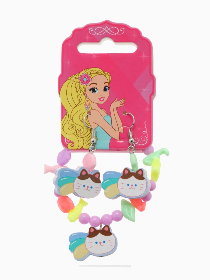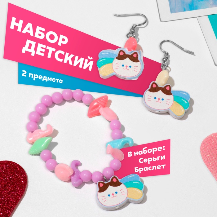 Набор детских украшений Выбражулька «Котёнок», 2 предмета: серьги, браслет d=5 см МИКС
