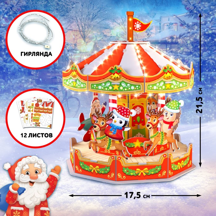 Конструктор 3D «Весёлая карусель», с гирляндой, 36 деталей