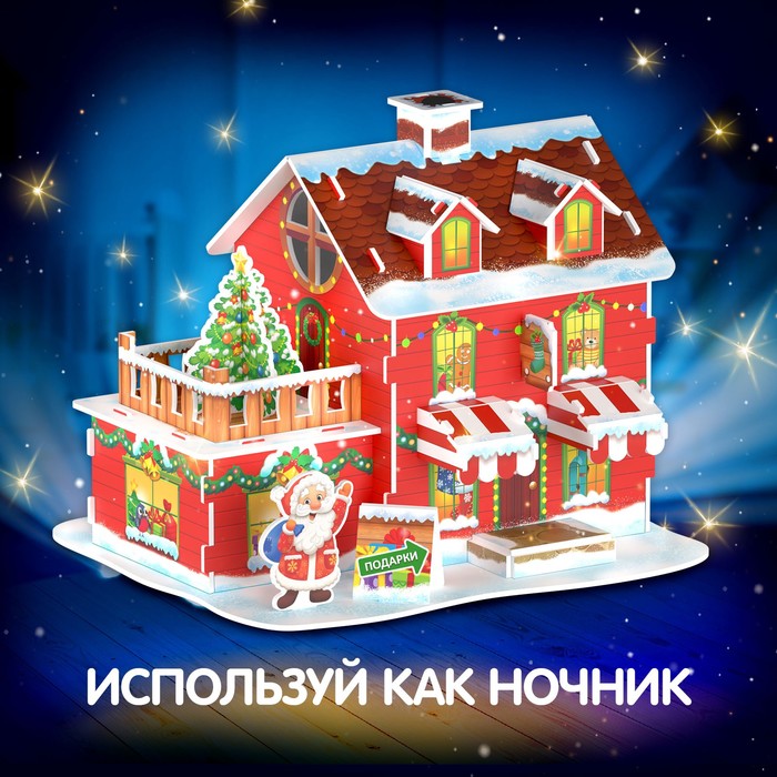Конструктор 3D UNICON «Магазин подарков», с гирляндой, 29 деталей