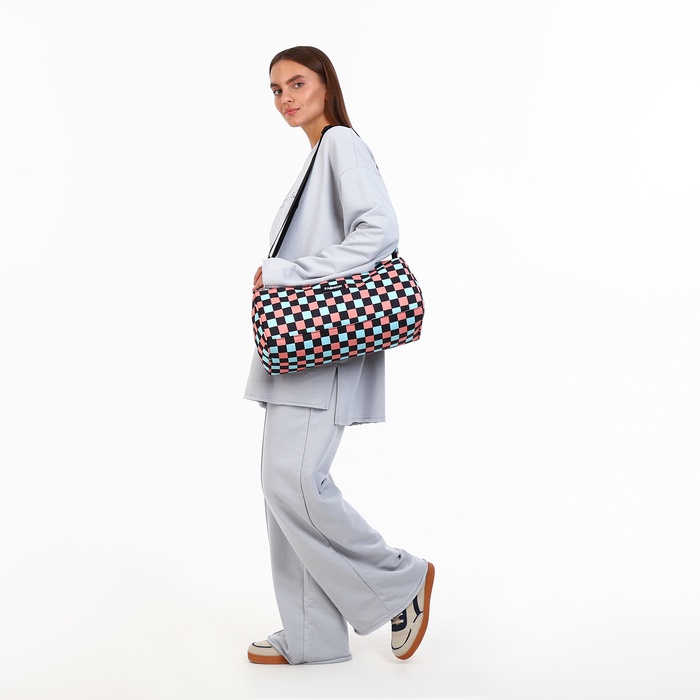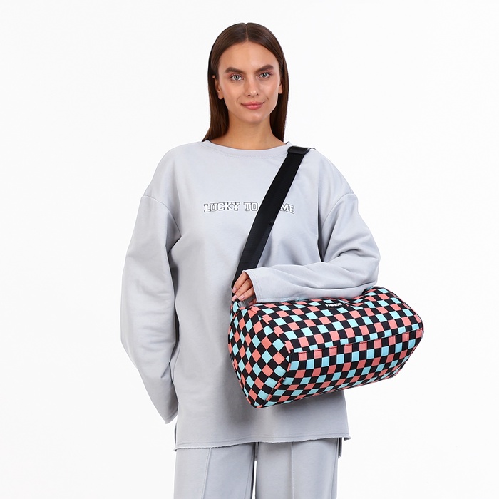 Небольшая спортивная сумка — лёгкий и яркий спутник для повседневной активности. Её клетчатый дизайн добавляет образу динамики, а продуманная конструкция делает использование простым и удобным.
