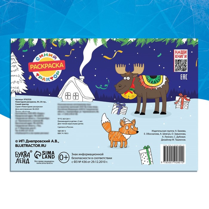 Новогодняя раскраска, А4, 20 стр., Синий трактор