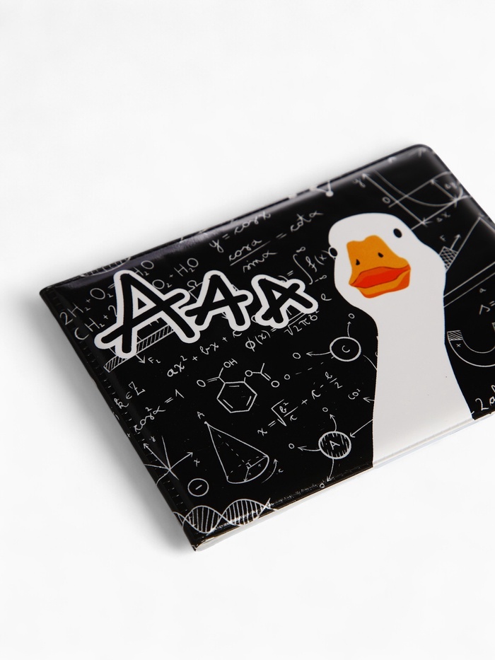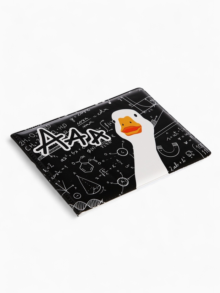 Чёрная обложка для студенческого с изображением гуся — это стильный и практичный аксессуар для повседневного использования. Её лаконичный дизайн с графичными надписями и цифрами подчёркивает принадлежность к студенчеству, сохраняя при этом индивидуальность. Прочный материал ПВХ надёжно защищает ваш студенческий билет от повреждений и износа в течение всего учебного года.