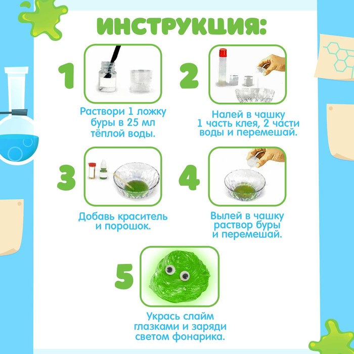 Набор для опытов «Светящийся слаймик», сделай сам