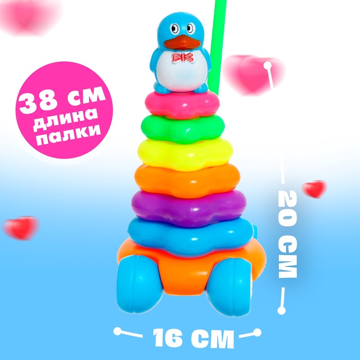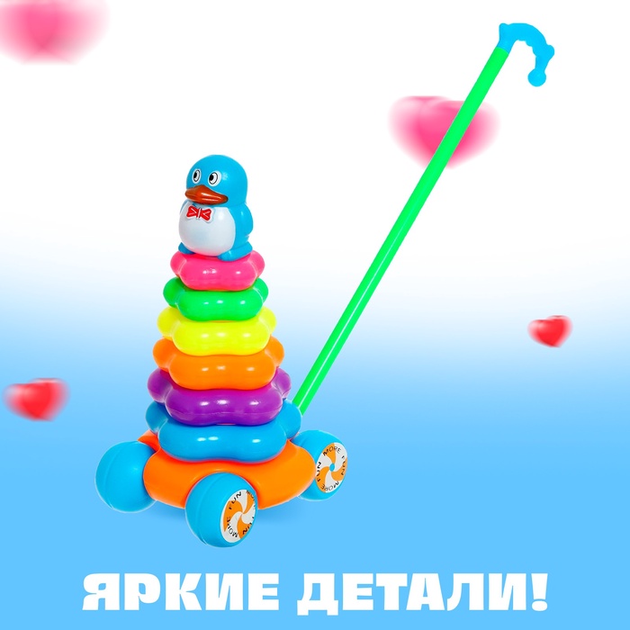 Каталка-пирамидка в форме пингвина станет отличной игрушкой для малышей от 3 месяцев. Она объединяет два функционала — пирамидку для развития моторики и каталку, которая побуждает ребёнка двигаться. Это универсальное решение для раннего возраста, которое надолго займёт малыша.