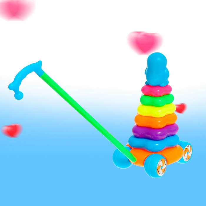 - На палке — ребёнок сможет толкать игрушку, укрепляя мышцы и координацию движений.